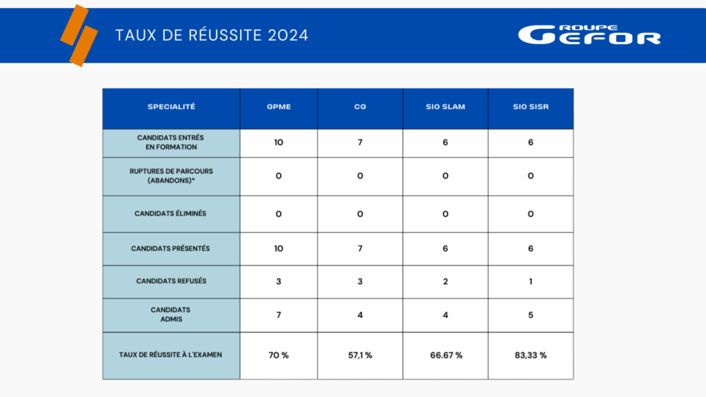 Nous sommes très fiers de vous communiquer les taux de réussite de la promotion GEFOR BTS 2020