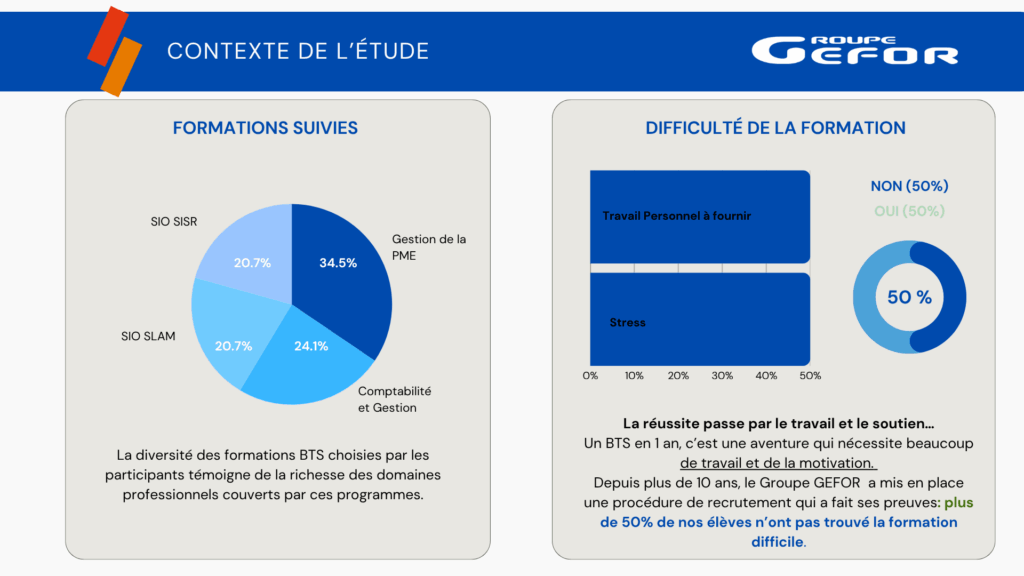 Depuis plus de 10 ans, le Groupe GEFOR  a mis en place une procédure de recrutement qui a permis à 48,48 % de nos élèves de ne pas trouver la formation difficile.