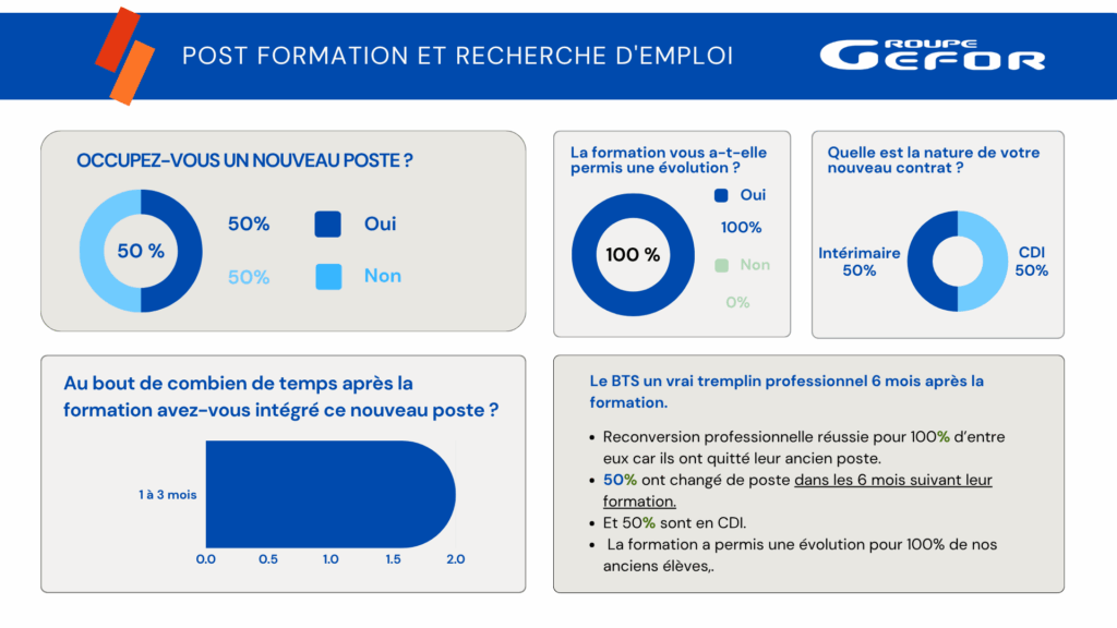 En effet, soucieux du devenir de ses anciens stagiaires, le Groupe GEFOR les sollicite tous les ans, 6 mois après la fin de leur formation,  afin de savoir ce qu’ils sont devenus.