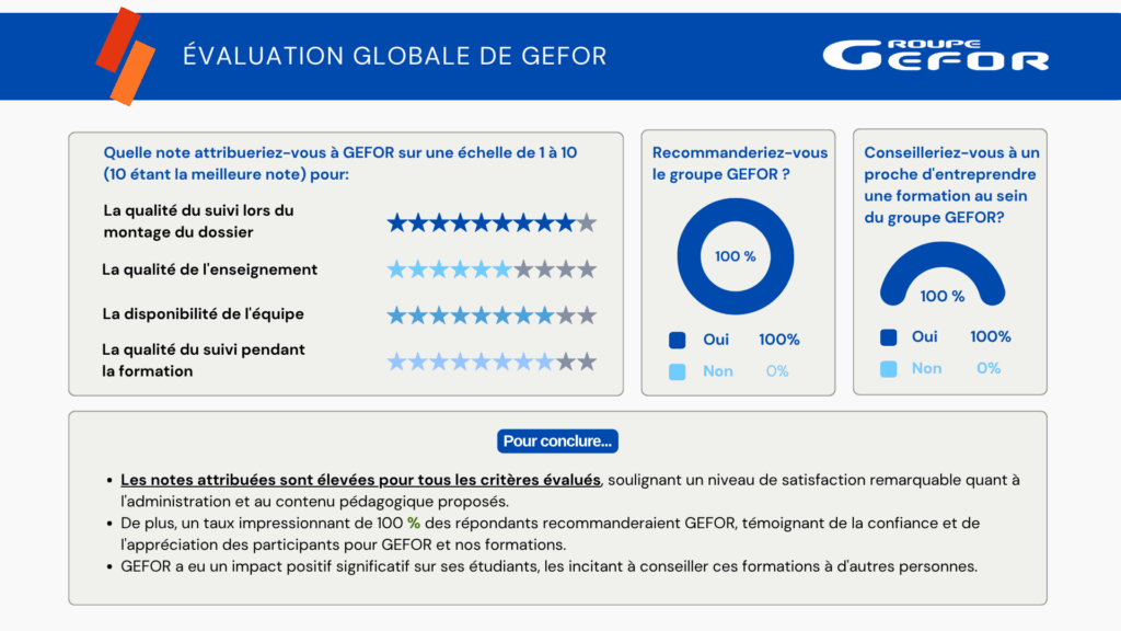 98% recommanderaient à un proche d’entreprendre une formation au sein du groupe GEFOR